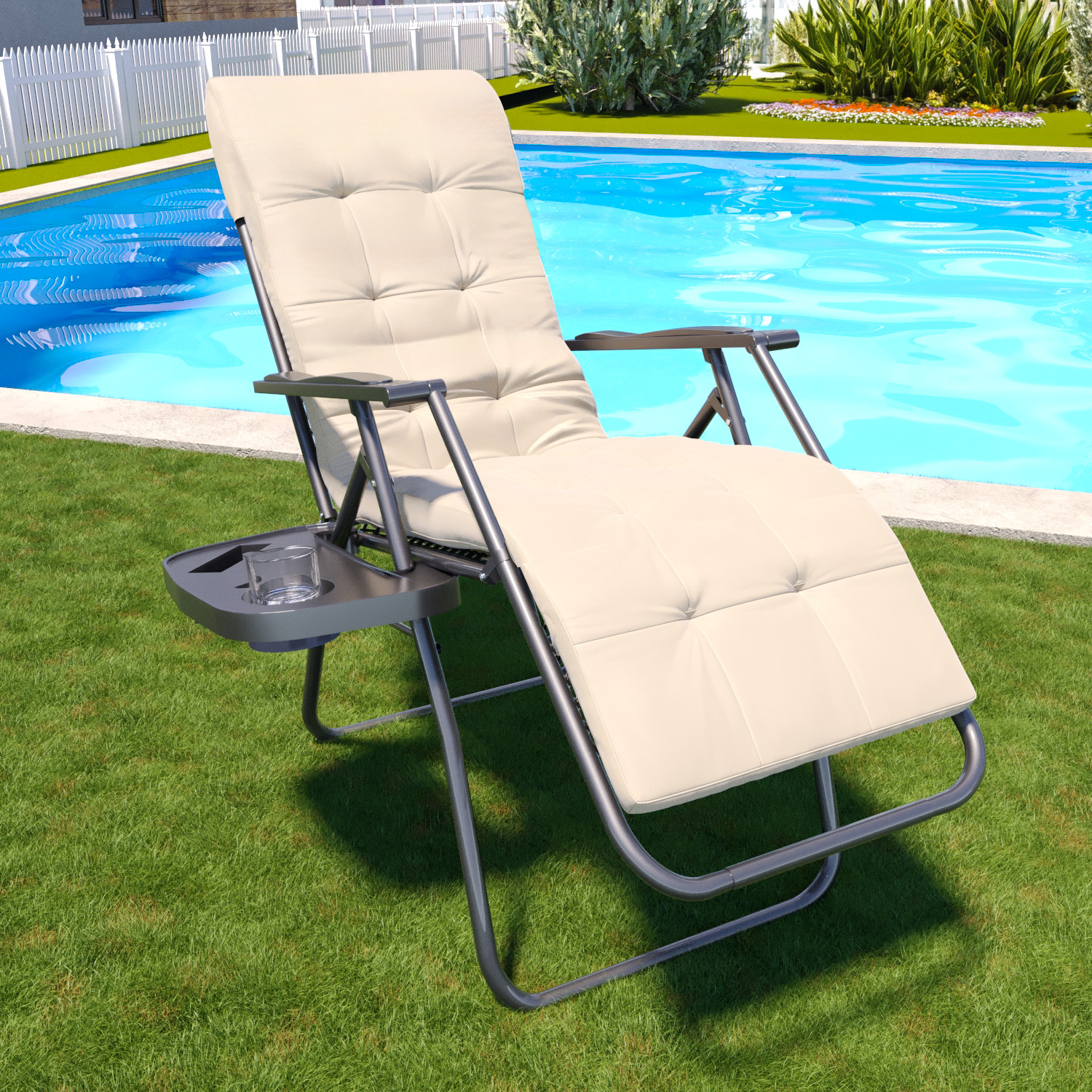 Sedia Sdraio Con Cuscino Trapuntato Imbottito E Portavivande Poltrona Relax Reclinabile Gravità 0 Design Ergonomico Richiudibile Salvaspazio In Acciaio Tubolare Gravity Zero Portata Max 120 Kg